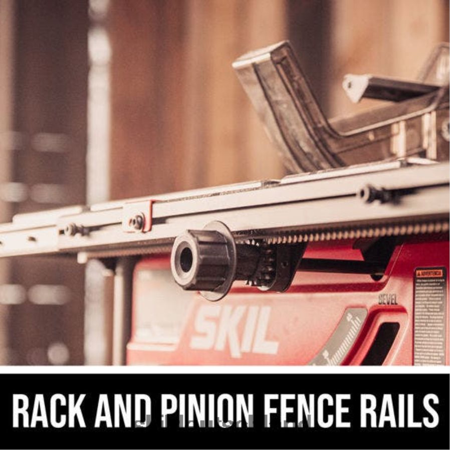 Die 10-Zoll-Tischkreissäge SKIL TS6307-00 für den Einsatz auf der Baustelle verfügt über eine Schnittkapazität von 64,77 cm (25-1/2 Zoll) und ist mit einem 15-Ampere-Motor, integrierten klappbaren Beinen, Zahnstangen-Anschlagschienen und einem Staubanschlusskrümmer ausgestattet Halten Sie Ihre Baustelle sauber. Der 15-Ampere-Motor schneidet schnell und mühelos durch Harthölzer, während die Zaunschienen mit Zahnstange und Ritzel eine schnelle, reibungslose und präzise Einstellung des Zauns ermöglichen. Mit seiner Fasenkapazität von 0–45 ermöglicht der Schnellspannhebel Schnitte zwischen zwei positiven Anschlägen bei 0 und 45 Grad, und seine 4×4-Schnittkapazität ermöglicht schnelles Schneiden im 90-Grad-Winkel. Die integrierten klappbaren Beine lassen sich nahtlos zu einem Klappständer zusammenfügen und bieten so Tragbarkeit und Komfort, während der Staubanschlusswinkel den Staub systematisch in einen Behälter umleitet, um die Reinigung zu erleichtern. Die parallele Klingenausrichtung ermöglicht eine einfache Klingeneinstellung entlang des Parallelanschlags und des Gehrungsschlitzes für präzise, präzise Schnitte. Diese Tischkreissäge verfügt über einen Sicherheitsschalter zum Schutz vor Wiederanlauf bei Stromausfällen. Diese große Tischkreissäge aus beschichtetem Aluminiumguss wird zAusgestattet mit einem 10-Zoll-Hartmetall-Sägeblatt mit 24 Zähnen. Bei Verwendung eines Dado-Einsatzes benötigt diese Tischkreissäge einen 8-Zoll-Dado-Sägeblattsatz.